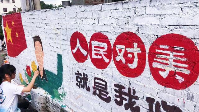 打稿、勾线、上色、调整……烈日炎炎,墙绘组同学们头戴草帽,手执画笔,在洁白的墙面上绘画。在短短三天之内,历时56小时完成四面半美丽多彩的大型墙绘。路过的村民纷纷驻足欣赏,为同学们点赞。村民陈叔说道:“这里以前就是一面破旧的老围墙,没想到画上画后让人眼前一亮,感觉环境漂亮了很多!”