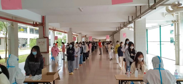各系部实时掌握师生的健康状态,配合做好核酸检测工作,加强在校生和因疫情无法返校学生的教育管理。在教务处的统筹下,有序开展线上教学工作,做好毕业生就业工作,指导和帮助学生解决因疫情影响面临的各类学习、生活和工作难题。各系的师生志愿者们服从安排调配,每天奔走在教学楼、宿舍楼、饭堂等点位开展志愿服务,默默地付出,用心守护校园安全稳定。在校园大型核酸检测现场,志愿红与天使白相互辉映,这个组合让人很安心。