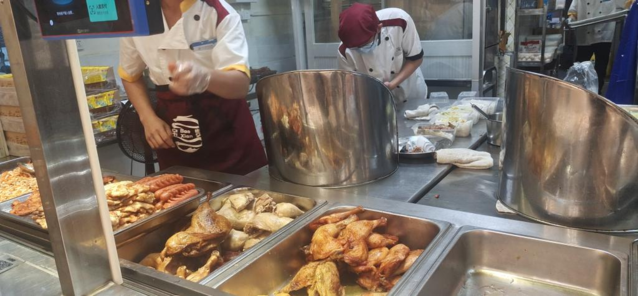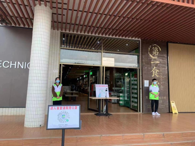 后勤人员检查饭堂、商超,保证食品安全、价格稳定