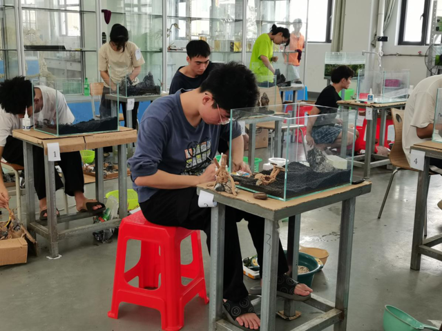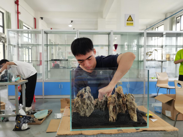 全国职业院校大学生水产技能大赛水族景观设计赛是高等职业教育水产类专业中具有广泛影响力的国家级赛事,因而吸引了全国各大高职院校学生的积极参与。受疫情影响,此次比赛采用线上线下相结合的方式进行,分为个人赛和团体赛进行技能比拼。广东茂名农林科技职业学院高度重视此次比赛,动物科学系认真研究部署参赛方案,积极备赛,并派出由水产教师组成的参赛团队参加大赛。经过紧张激烈的角逐,该校最终有4名同学通过了初赛选拔,顺利进入全国总决赛。在总决赛中,该校选手不畏强手,勇于拼搏,凭借扎实的专业知识和过硬的心理素质一路过关闯将,最终由欧志杰、陈昆平老师指导、余桂彪同学创作的作品《梦幻森林》在此次大赛中脱颖而出,斩获一等奖,刘文捷、曹雨欣、杜威强等同学斩获个人三等奖;该校斩获团体二等奖1个、团体三等奖1个,指导老师欧志杰、陈昆平、叶成凯、彭钟琴荣获“优秀指导老师奖”。